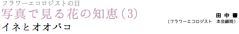 イネ科植物の多くの種の花は雄しべを3 本ずつもつている。しかし、イネは自らの名を冠するイネ科の植物なのに、例外的に雄しべを6 本も持っているのだ。例外的と書いてしまってから、本当に例外的か否かを知るため、長田武正(1989)「日本イネ科植物図譜」の記載や図で雄しべの数を調べてみた。この図鑑には300 余種のイネ科植物が掲載されており、その3 割ほどの95 種で雄しべ数が示されていた。計数した結果、1 小花あたり雄しべを3本もつ種は73 種(77%)、1 −2 本は19 種(20%)、そして6本あるのはイネを含めて3 種(3%)にすぎなかった。やはり例外的だと言えよう。