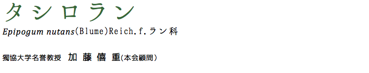腐生ランの一種である本種にタシロランと新しく和名をつけられたのは牧野富太郎先生で、「植物学雑誌」20 巻236 号79?80 ページ(1906 年 明治39 年) に報告されている。本種の属名はEpipogum あるいは Epipogium で初めて報告されたのBonplandia1857: 36 ページ(1857)であるが、津山尚先生の論文(1967)や村田源・主原憲司先生の論文(1998)ほかによると、本種はアフリカ、オーストラリア・インド、ネパール、ミクロネシア、台湾等から見つかっていろいろな名前で報告されている種類がタシロランと同一種と考えられ、広分布種であることが確認されている。その結果、学名もEpipogum roseum Lindley が正しいとされるようになった。